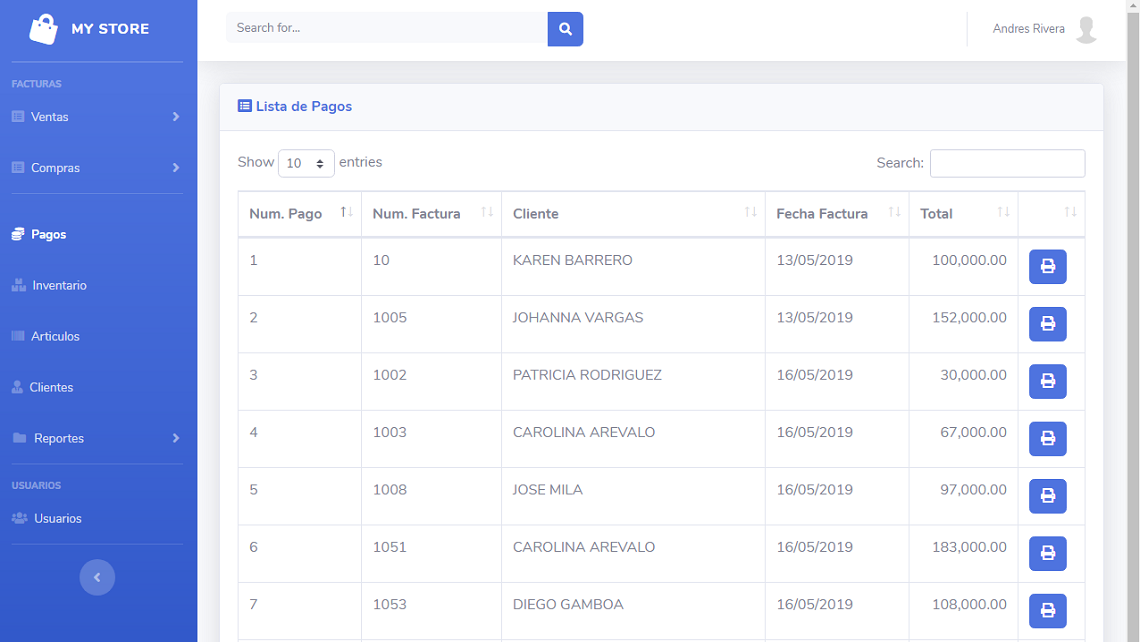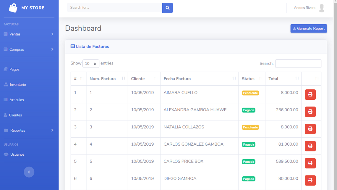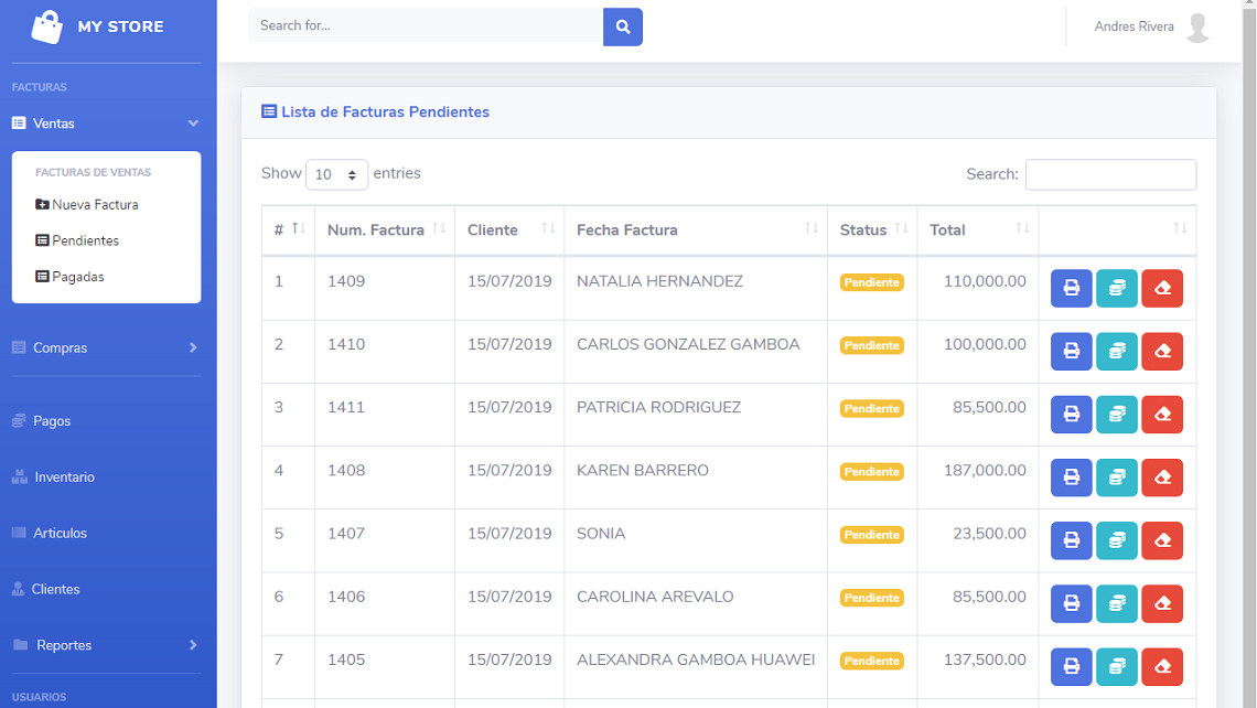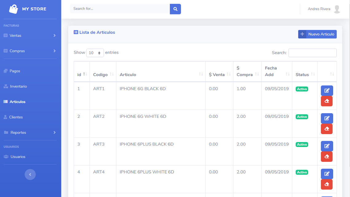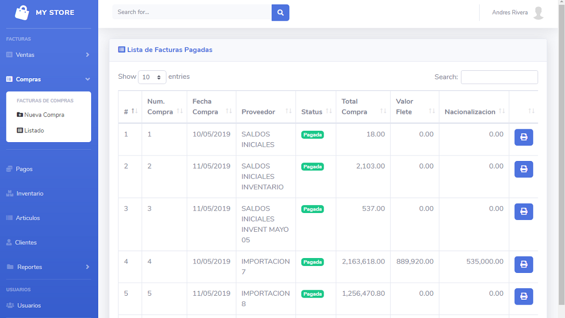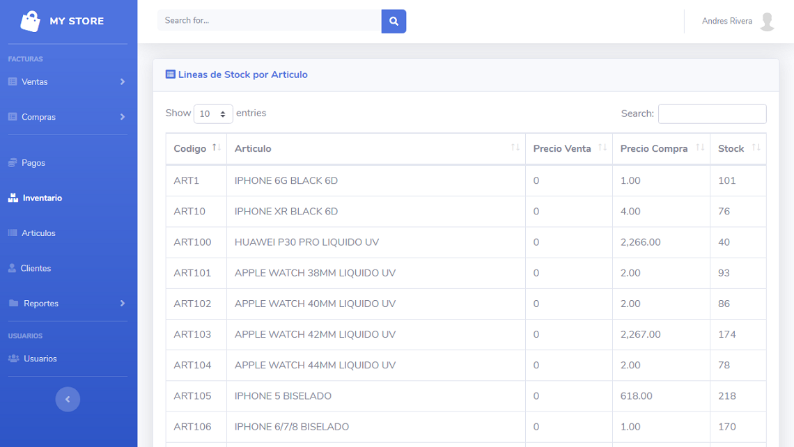 MyStore es un sistema deseñado para el manejo de tiendas o negocios pequeños y medianos, con la funcionalidad de la gestion de clientes, proveedores, articulos, facturas de compras y ventas y el manejo de inventario. Ademas el sistema puede manejar el estado de cartera, pagos por pagar y saldos por cobrar. Permite la generacion de reportes personalizados a la medida del cliente, es un sistema netamente personalisable, se puede adaptar a cualquier negocio.
